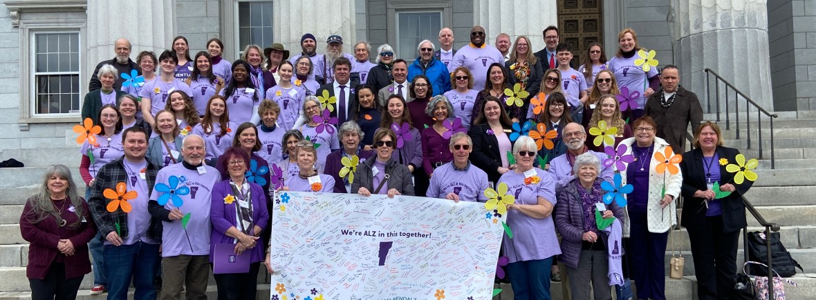 Photo Note: The group of advocates, representing the nearly 13,000 Vermonters diagnosed with Alzheimer’s, who came to the State House on Alzheimer’s Awareness Day to advocate for legislation that would support families impacted by Alzheimer’s, including the unpaid caregiver tax credit originally included in S.51.